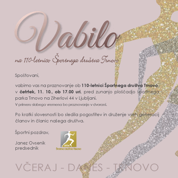 V počastitev praznovanja 110-letnice Športnega društva Trnovo vas vljudno vabimo na prireditev,
